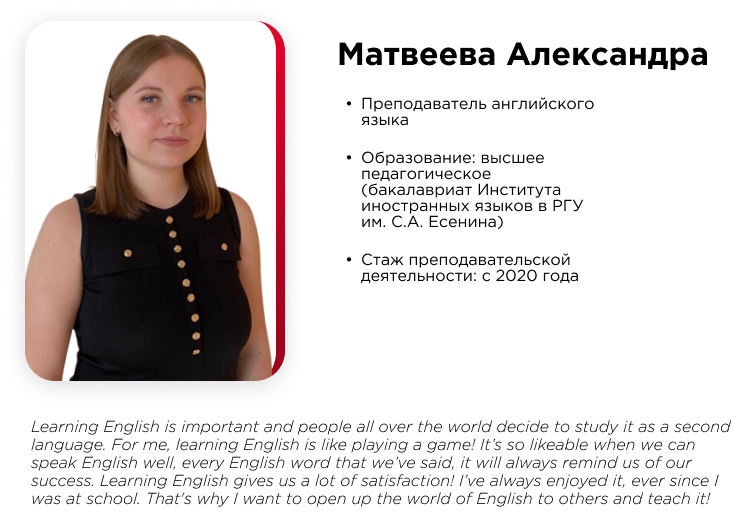 Мы гордимся своими достижениями и успешными историями наших учеников, которые достигли высоких результатов в изучении английского языка благодаря нашей школе. Мы верим в значимость языкового образования и стремимся помочь нашим ученикам расширить свои горизонты и достичь успеха в личной и профессиональной жизни.